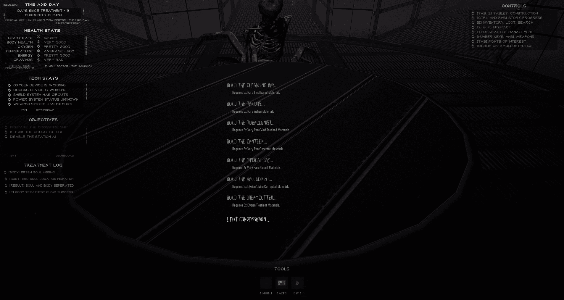 Every vessel container type includes its own tooltip, dedicated HUD elements, and optional tutorials accessible through the 3D tablet, keeping the player informed without breaking immersion.